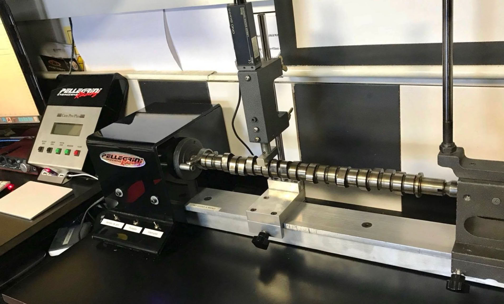 Esta maquinaria se encuentra a disposición de nuestros alumnos, ex-alumnos y clientes, para efectuar mediciones en árboles de leva entregándose un detallado informe con todos los valores de los reglajes, conociendo anticipadamente la tensión necesaria de resorte para que el sistema no colapse en un régimen de giro determinado.