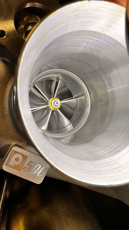 Con un control total sobre la electrónica, llevamos el turbo stock hasta sus límites seguros: 350 WHP. Para ir más allá sin convertir el auto en un vehículo de pista con mucho retraso (turbo lag), optamos por el Pure500. Esta unidad nos permitió ganar caudal en todo el rango de revoluciones. La instalación requirió modificar la entrada de admisión para acomodar la nueva rueda compresora de mayor diámetro, manteniendo una salida de escape fluida. Esta configuración nos da lo mejor de dos mundos: la respuesta instantánea de un turbo original con el 'pulmón' necesario para no morir en altas RPM.