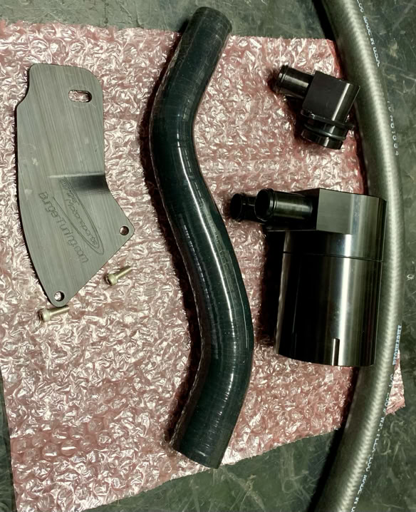 Mantener una admisión limpia y libre de residuos es fundamental para el rendimiento a largo plazo. Por ello, instalamos un separador y decantador de aceite (Catch Can). Es sabido que el sistema original, que utiliza un ciclón integrado en la tapa de válvulas, suele ser insuficiente, permitiendo que vapores de aceite lleguen a la entrada del turbocompresor. Con esta mejora, interceptamos esos residuos antes de que contaminen el sistema, garantizando una combustión más pura y una mayor vida útil del motor.