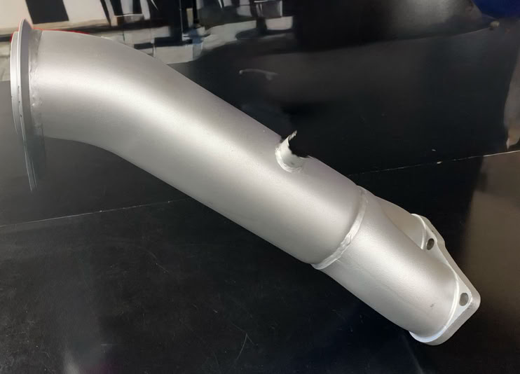 Para optimizar la salida de gases y reducir la temperatura en la zona de escape, instalamos un downpipe. Esta modificación permite disminuir las restricciones, facilitando un flujo de gases más fluido y constante. Este componente es esencial para liberar al motor de la retención térmica excesiva, mejorando tanto la respuesta del turbo como la fiabilidad general del conjunto