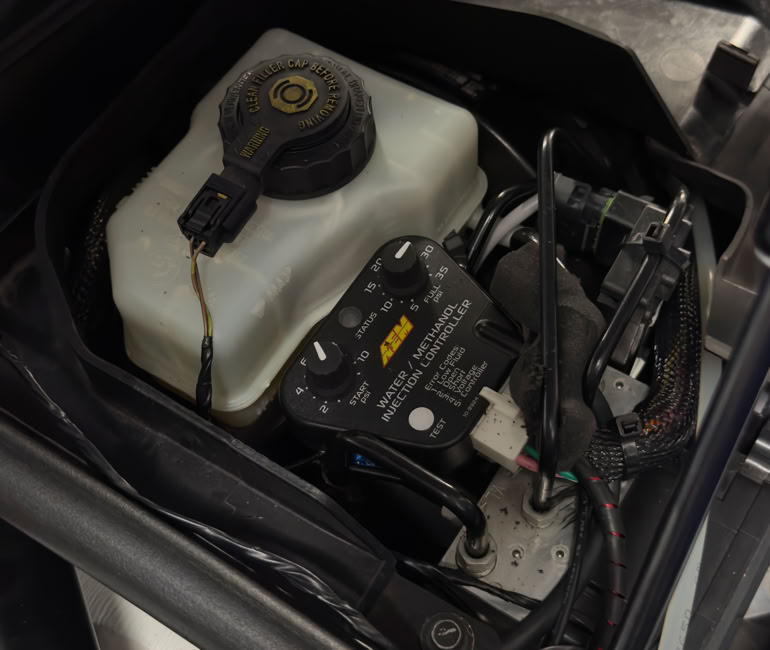 Como medida de seguridad avanzada, incorporamos un sistema de inyección de agua-metanol (WMI). Esta tecnología actúa como un potente agente refrigerante en la cámara de combustión, alejando el fenómeno crítico de la detonación (knock). Al reducir drásticamente las temperaturas internas, el sistema nos permite implementar estrategias de calibración más ambiciosas, optimizando el avance del encendido y la presión de sobrealimentación sin comprometer la fiabilidad del bloque N55.