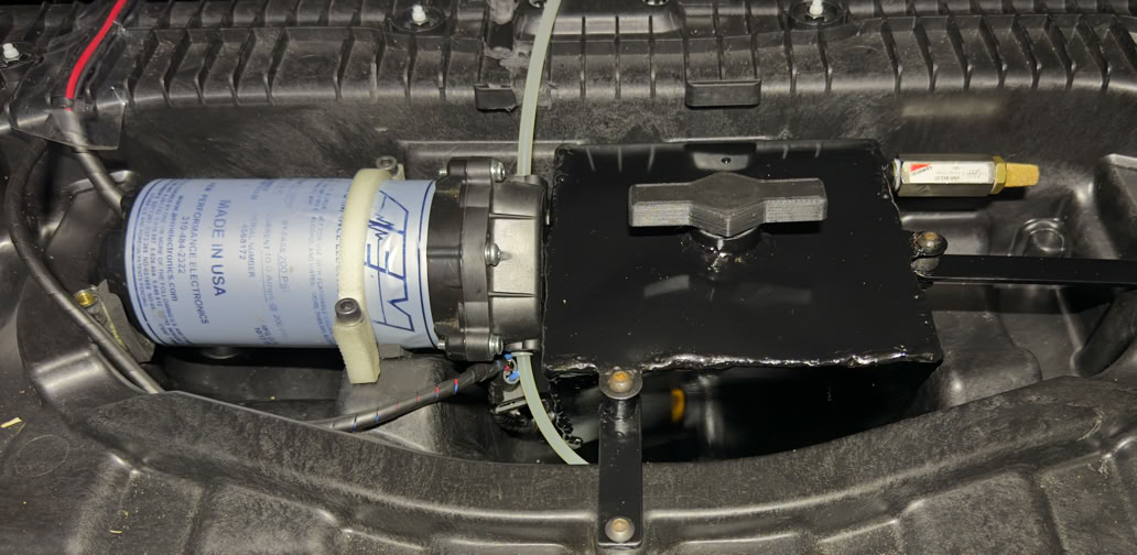 Para respaldar el mayor caudal de aire proporcionado por el nuevo turbo, fue indispensable reforzar el sistema de alimentación. Reemplazamos la bomba de cebado original por una Walbro 450 (TI Automotive), encargada de abastecer con solvencia a la bomba mecánica de inyección directa. Esta mejora nos asegura un flujo de combustible constante y seguro para potencias de hasta 550 HP, garantizando que la mezcla aire-combustible se mantenga siempre en rangos óptimos bajo máxima exigencia.